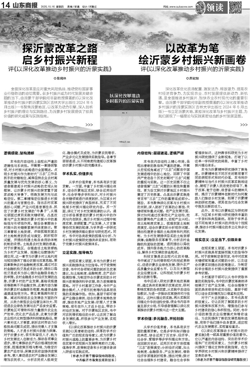 - 探沂蒙改革之路 启乡村振兴新程——评《以深化改革推动乡村振兴的沂蒙实践》2025-10-17